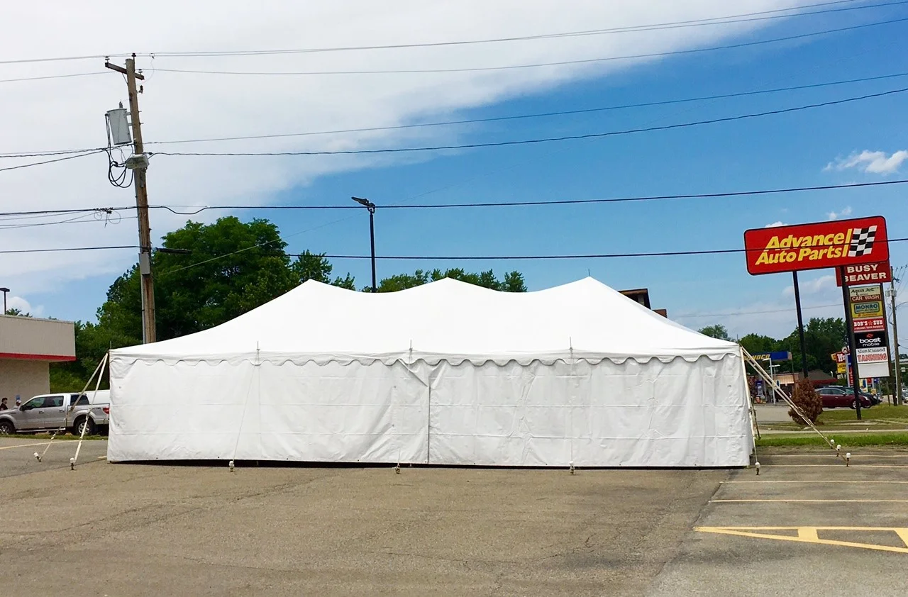 Our tents can be secured in asphalt upon a customer's request. We pre-drill 1" holes for our tent stakes in order to drive the stakes into an asphalt surface. Upon take down, the holes are back filled and repaired. The charge for drilling and repair services is based on the style and size of tent chosen. Please call for details.